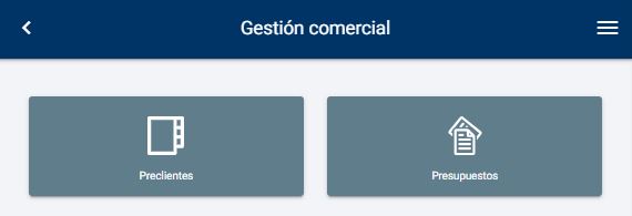 Ambas opciones las desglosaremos en los siguientes apartados, donde veremos en el primer botón la gestión y creación de preclientes y en el segundo apartado todo lo referente a los presupuestos.