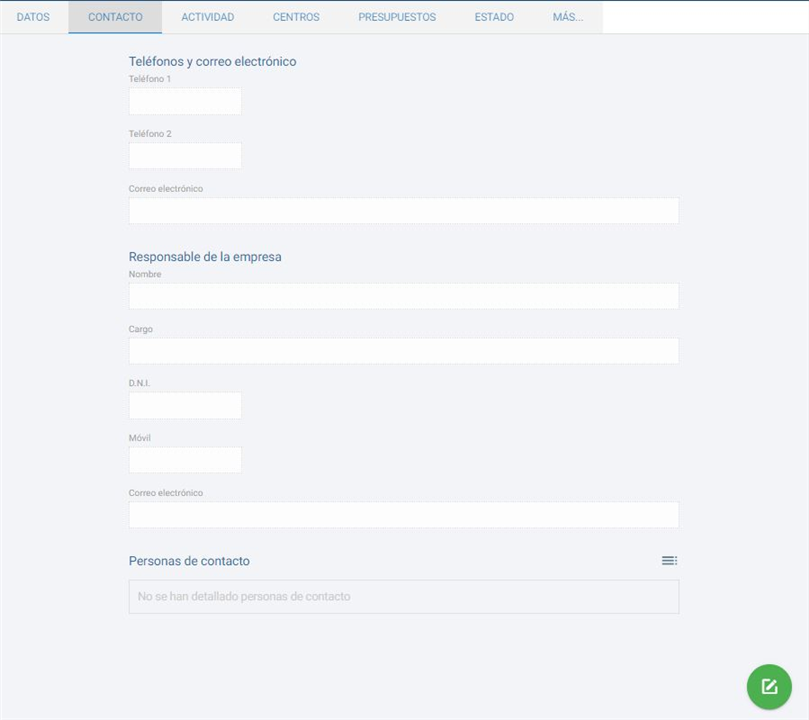 En los siguientes apartado veremos cada una de las pestañas presentes en el formulario de creación y edición de una empresa precliente.