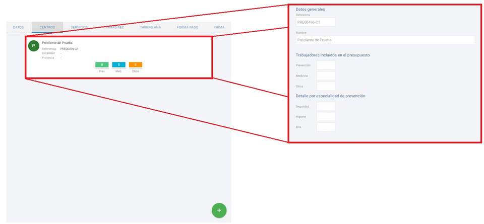 . Al crear un nuevo centro, se abre la ficha de datos del centro de trabajo, muy similar a la pantalla que veníamos de datos generales de la empresa Precliente. En la siguiente captura podemos ver este formulario: