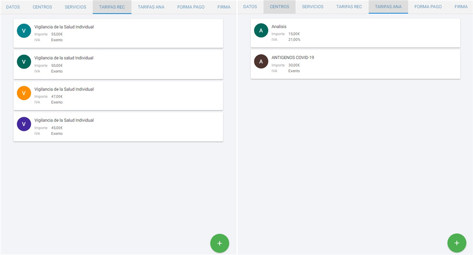 situado en la parte inferior derecha, que usaremos para añadir las tarifas que queremos incluir. Estas tarifas, tanto la de reconocimientos como las de analíticas provienen de un mantenimiento. Disponemos de más información sobre estos en el siguiente manual.