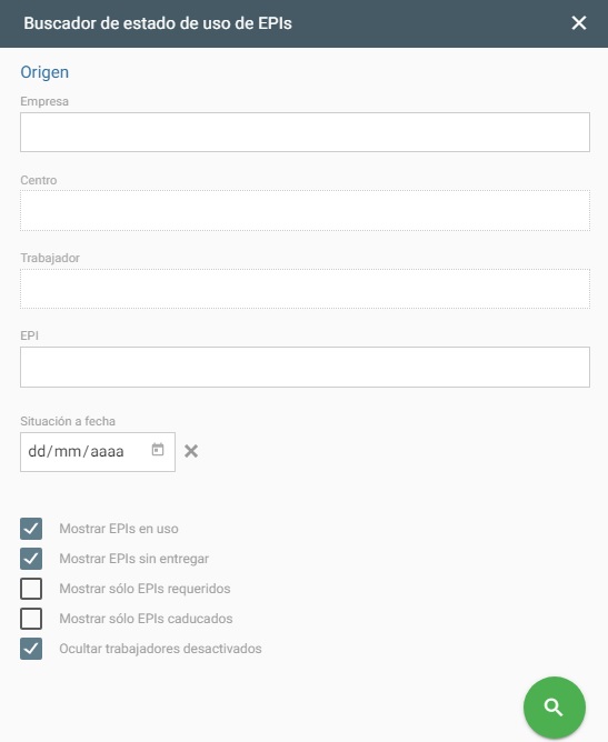 Accede al listado de entregas de EPIs que podrá filtrar mediante el menú opciones