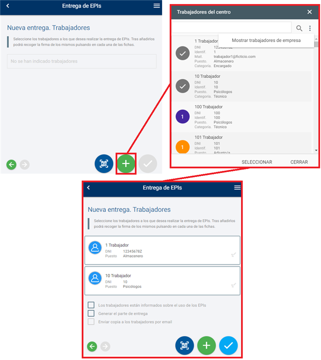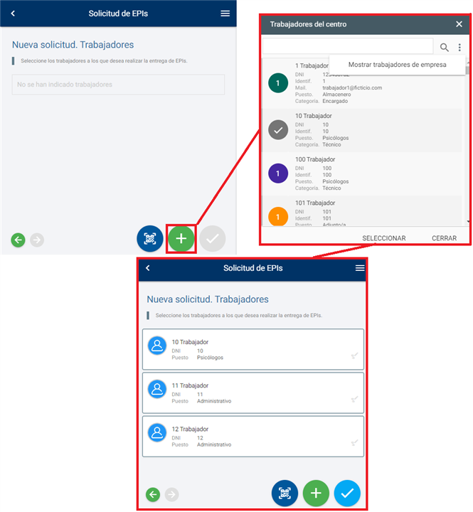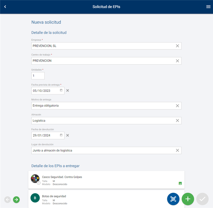 Ya con todo preparado, se añadirán los EPIs solicitados mediante el botón