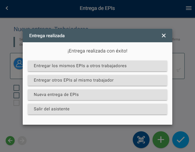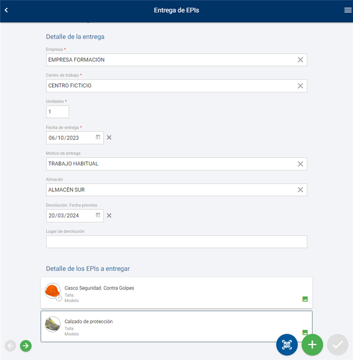 Una vez que hemos establecido qué EPIs y a quién se le entregan se confirmará la entrega mediante