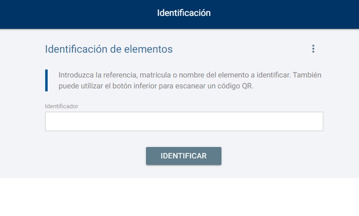 que encontramos en la parte inferior derecha. Nos abre la cámara que tengamos configurada en nuestro dispositivo donde podemos leer el código QR e identificar así al elemento (esta funcionalidad depende de los permisos de su dispositivo).