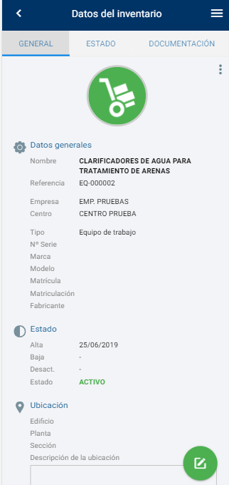 En el caso de la maquinaria, es similar a los trabajadores y abrirá la ficha del inventario. Para más información vaya a este manual