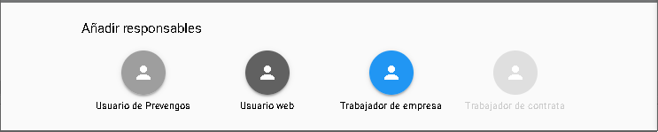 - Responsables. Podemos añadir usuarios de Prevengos, usuarios web, trabajador de empresa o trabajador de contrata (si procede).
