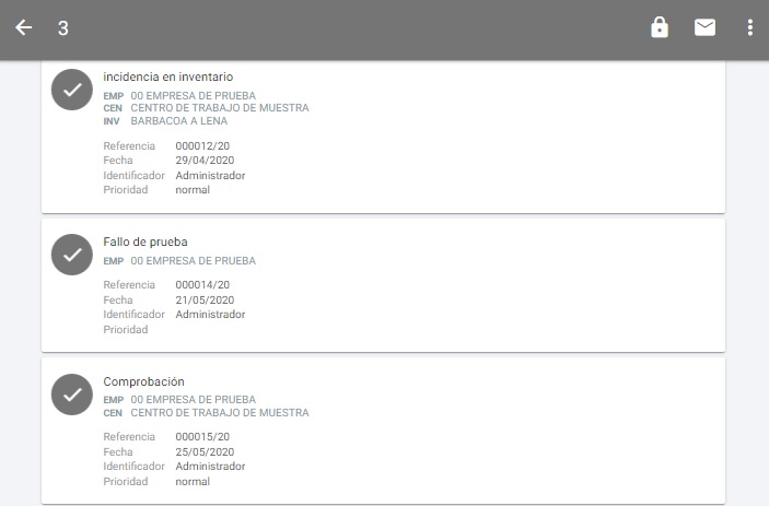 Como vemos en la imagen, se nos muestra una serie de opciones en la parte superior. Podemos ver la cantidad de elementos seleccionados con el número situado a la izquierda, en la parte derecha podemos cerrar las incidencias seleccionadas con el icono