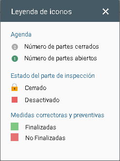 Podrán identificar si hay partes de inspección pendientes o cerrados gracias a la simbología de círculos de colores que aparecen en las casillas de los días del calendario.
