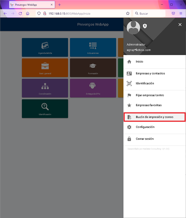 la cual muestra este desplegable donde podemos seleccionar Buzón de impresión y correo