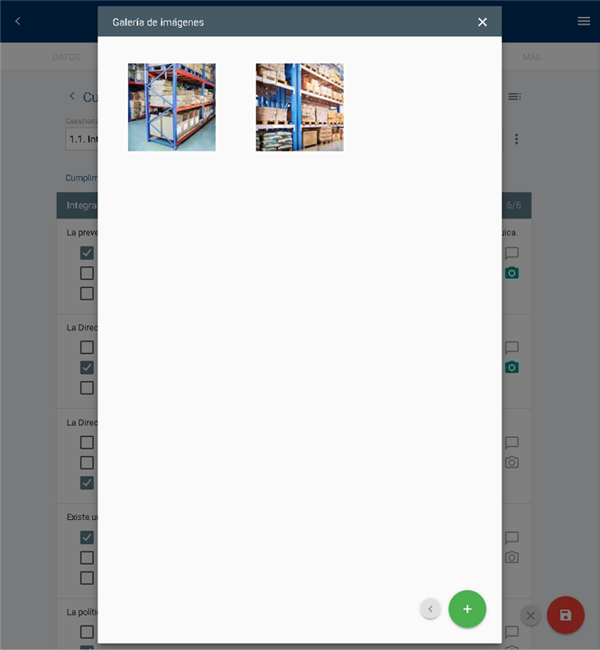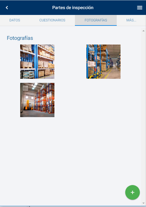 Una vez seleccionadas las imágenes, se mostrará una miniatura en el apartado de 'Fotografías' del parte de inspección.