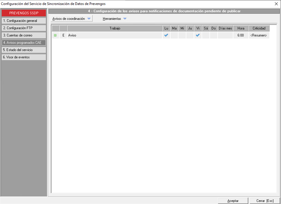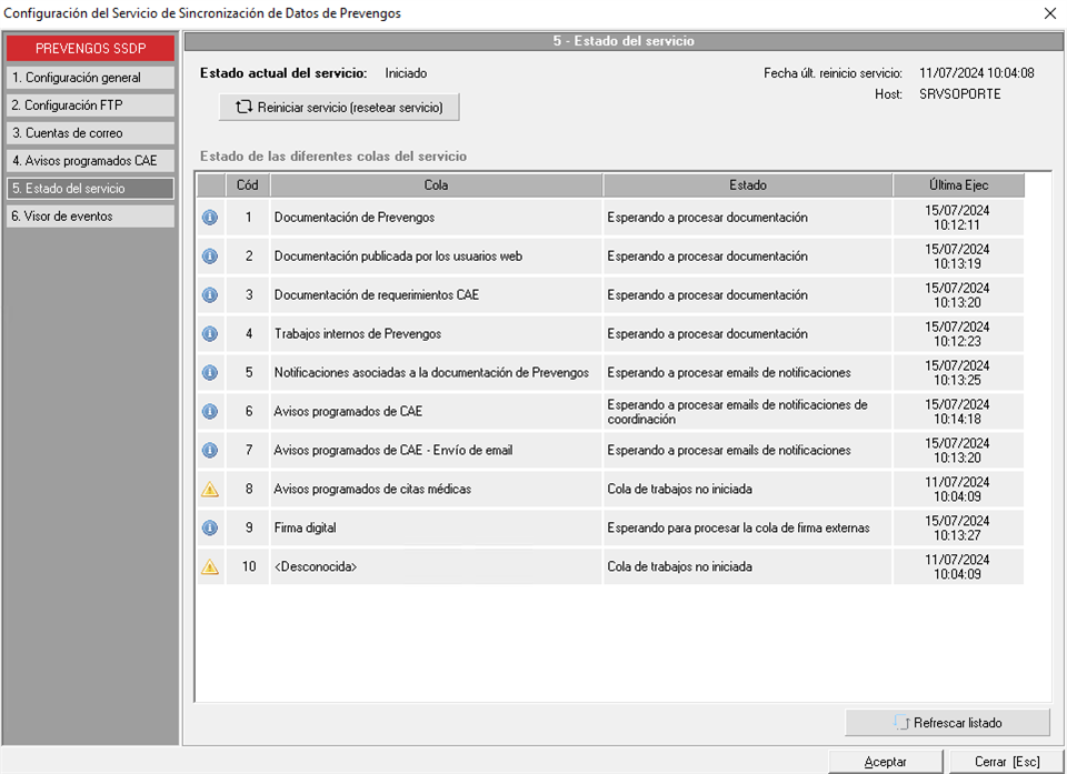 10. Configuración del Servicio de Sincronización de Datos de Prevengos (SSDP)
