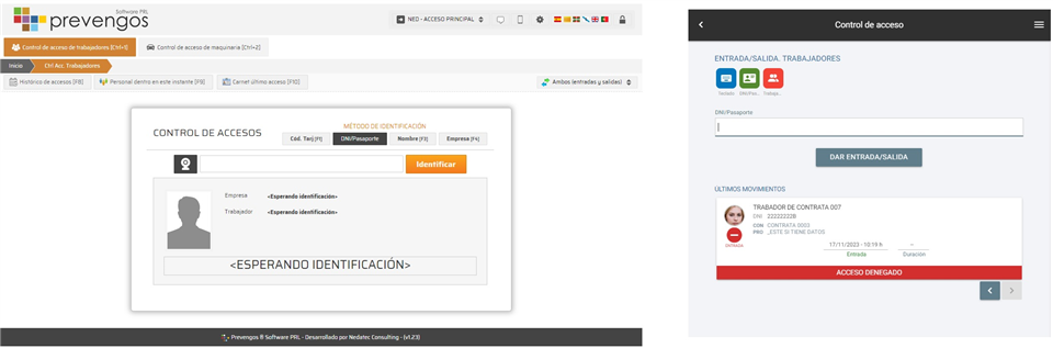 La web de control de accesos es un portal en el que un vigilante o responsable de los accesos a un centro, puede validar/rechazar la entrada de un trabajador o maquinaria en función del estado documental que tenga el mismo y la contrata a la que pertenece.