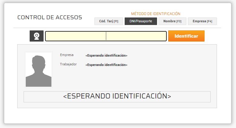 con el que el vigilante puede abrir la webcam de su equipo y "leer" con ella el carnet de acceso del trabajador (código QR o código EAN)