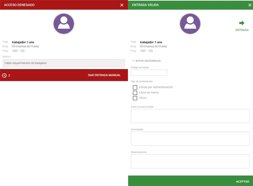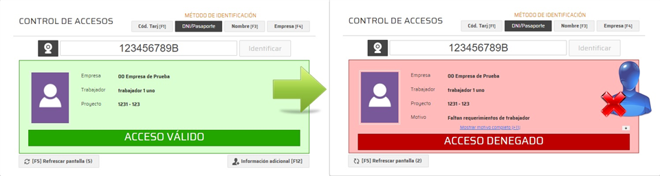 Independientemente de si damos acceso a un trabajador o a una maquinaria, la validación del acceso es similar, pudiendo ocurrir una de las siguientes circunstancias:
