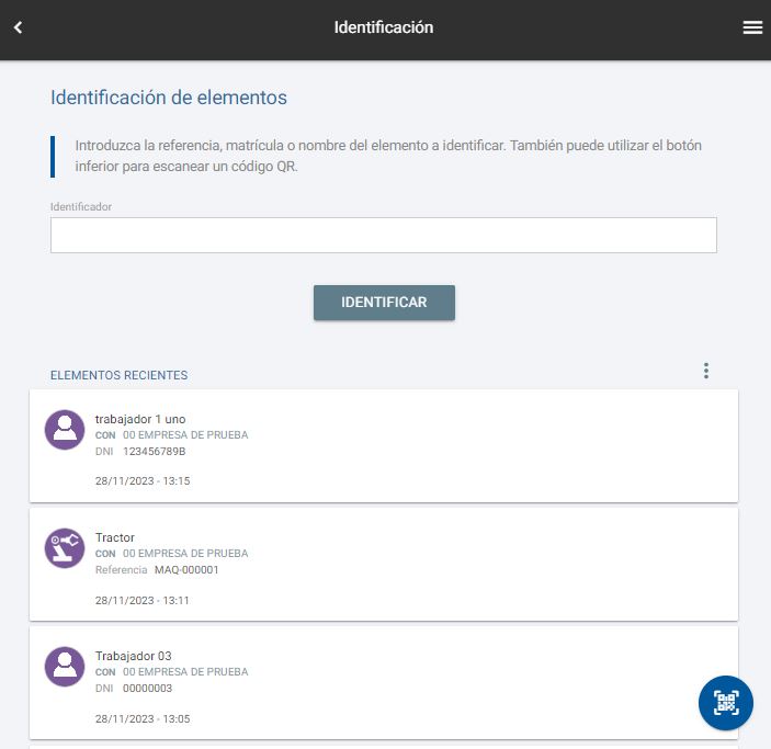 - Identificación. Herramienta que nos permite buscar trabajadores o maquinaria con el fin de acceder a su ficha.
