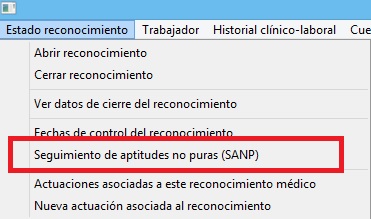 Dentro de esta herramienta encontraremos aquellos reconocimientos médicos que tienen algún seguimiento de aptitudes no puras. Recordemos que este seguimiento se marca dentro del propio reconocimiento tal y como vemos en la siguiente captura: