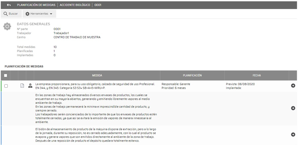con el que accedemos a las medidas planificadas siempre que haya medidas en las que la empresa es responsable, en caso de que no el botón se mostrara en gris, podremos acceder pero no podremos gestionar las medidas.