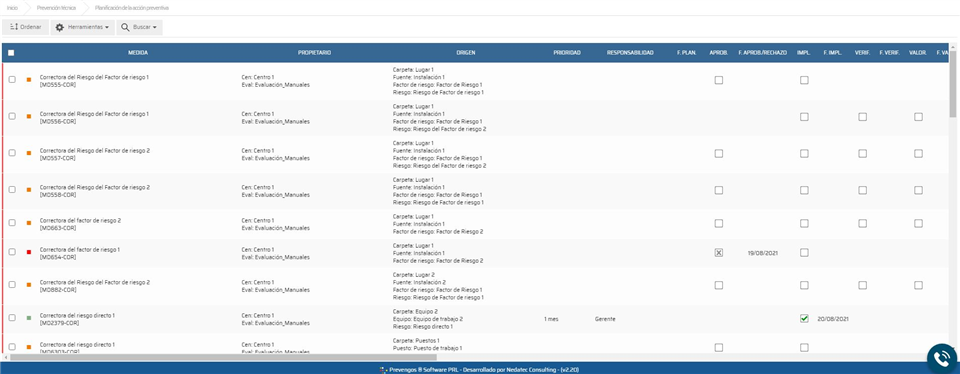 Dentro de la herramienta de planes de prevención el usuario puede ver un listado de todos los planes existentes en la empresa, viendo una pantalla similar a esta:
