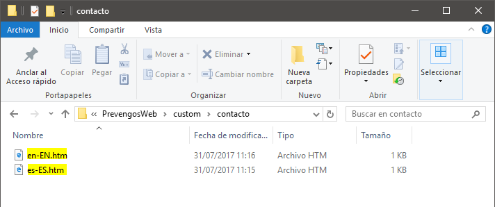 Estos textos se encuentran en formato HTML dentro de la carpeta custom\contacto\ del directorio de instalación de la web con el identificador del idioma al que pertenezcan (es-ES, ca-ES o en-EN).