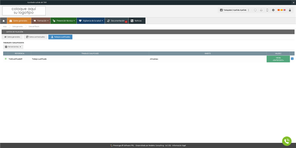 Si nos centramos en la pestaña de 'Trabajos cualificados', el trabajador visualizará la lista de los trabajos para los que está cualificado y que puede desempeñar, en función de la formación y las cualificaciones del propio trabajador y que son necesarias para realizar un trabajo concreto.