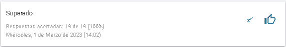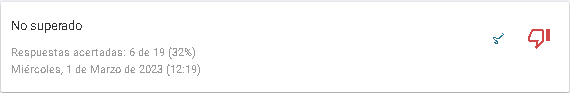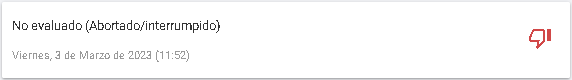 , independientemente de las preguntas respondidas, se cerrará el cuestionario y en el apartado de 'Resultados obtenidos' se indicará que la prueba no está evaluada.