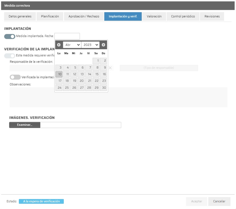 Si el trabajador pulsa sobre alguna de estas medidas, accederá a su ficha de datos, donde podrá visualizar todos los datos de la medida. Además, aquellos apartados donde esté puesto como responsable, se habilitarán para que pueda cumplimentarlos.