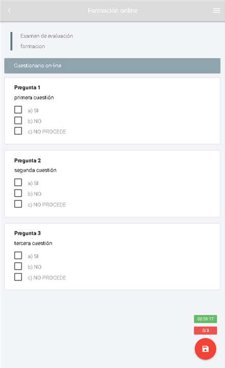 En los cuestionarios en curso se grabará la selección aunque no lo terminemos, habilitándose el botón de guardado